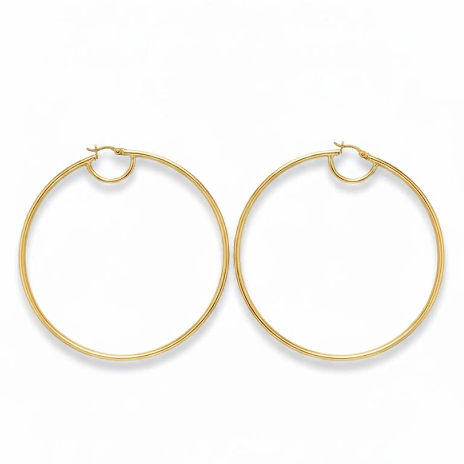 Estos aretes aros de oro están elaborados en oro macizo de 14 quilates y presentan un diseño delgado con un delicado grabado en el borde que aporta un brillo discreto. Son ligeros, cómodos y muy versátiles, ideales para llevar todos los días sin perder el estilo.